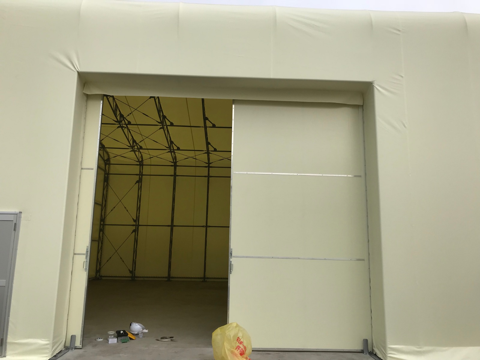 テント倉庫には同じ生地でハンガードアを設置する事が